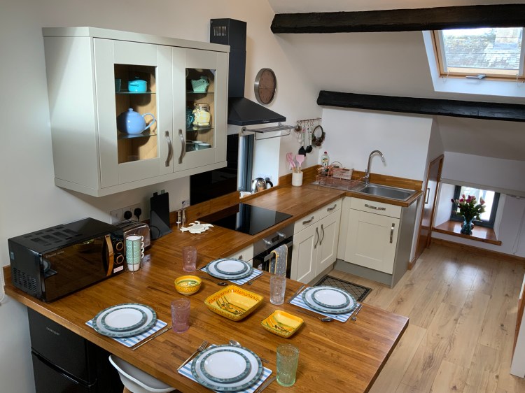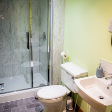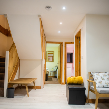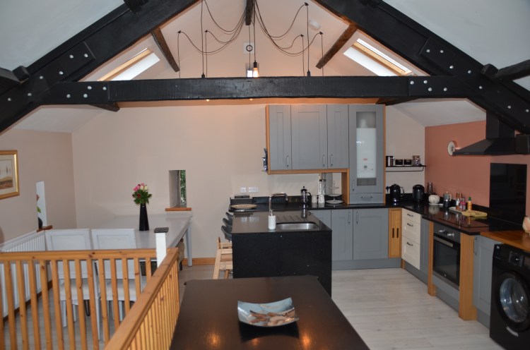 This stunning barn conversion offers a large open plan kitchen with dining space for your whole group. There are galleries looking down into a beautiful sunlit lounge area. The main part of the barn includes 3 downstairs bedrooms, an upstairs bedroom and a bathroom on each floor.